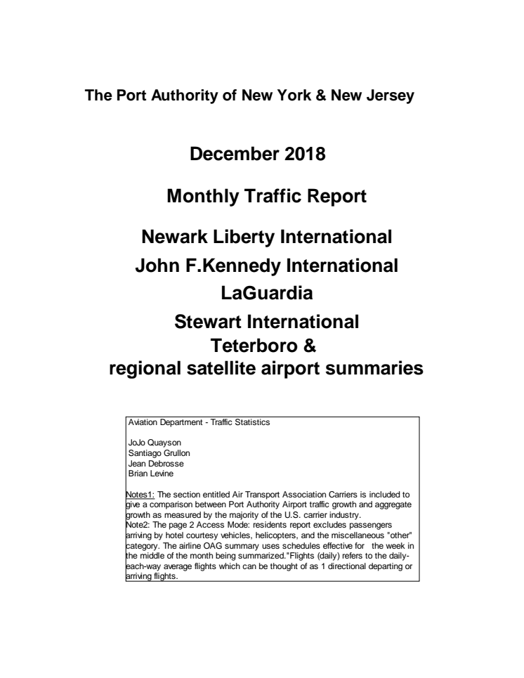 The Port Authority of New York & New Jersey - monthly traffic report - December 2018